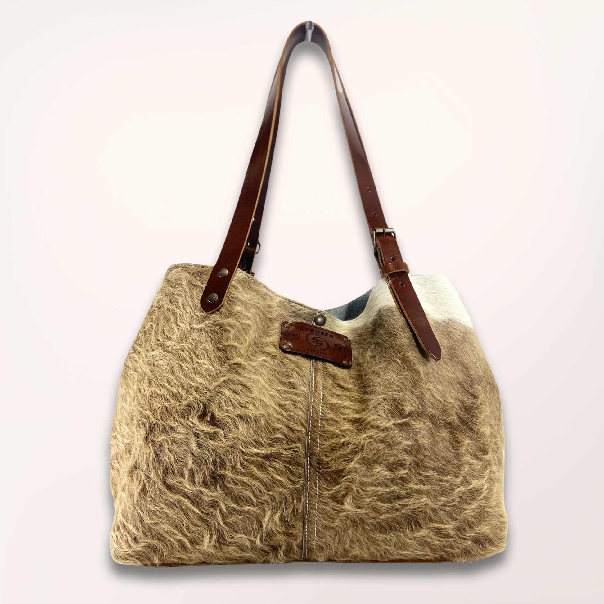 Brown Swiss cowhide tote bag – Taupe & Natural White #13/072