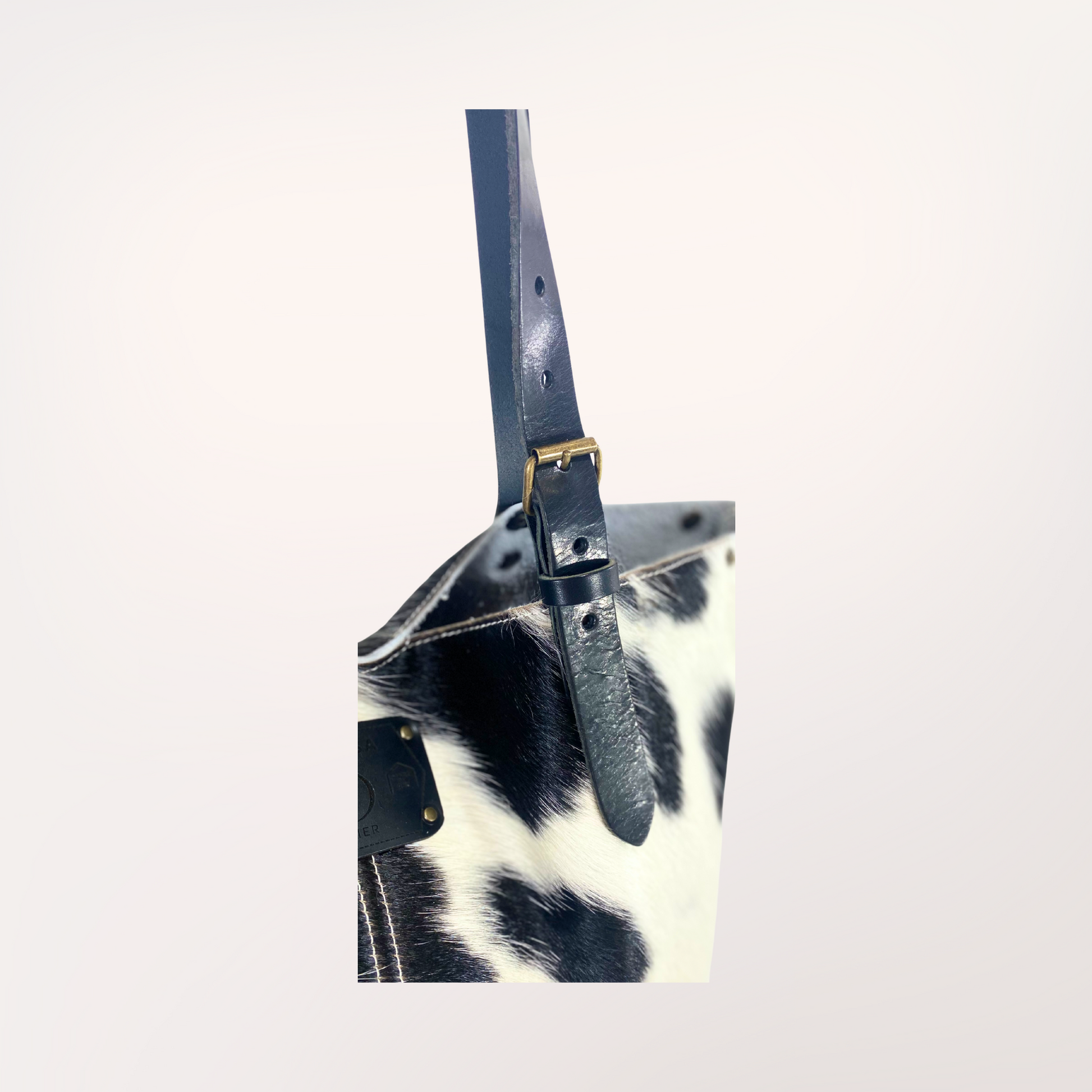 Cabas en peau de vache Holstein – Noir & Blanc naturel