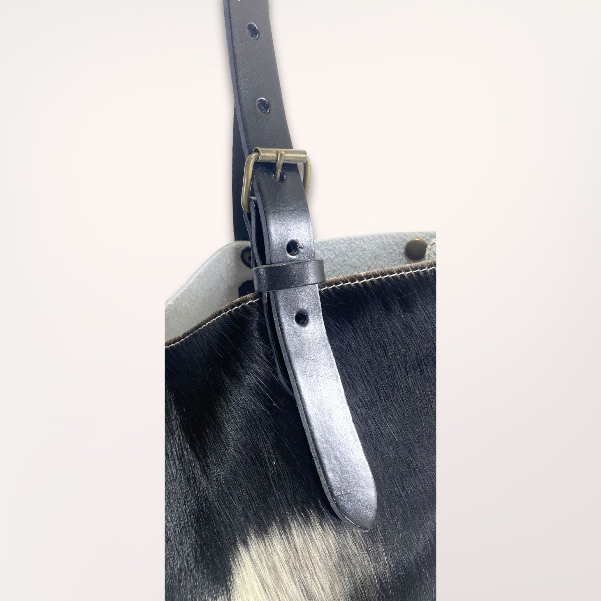 Cabas en peau de vache Holstein – Noir & Blanc naturel