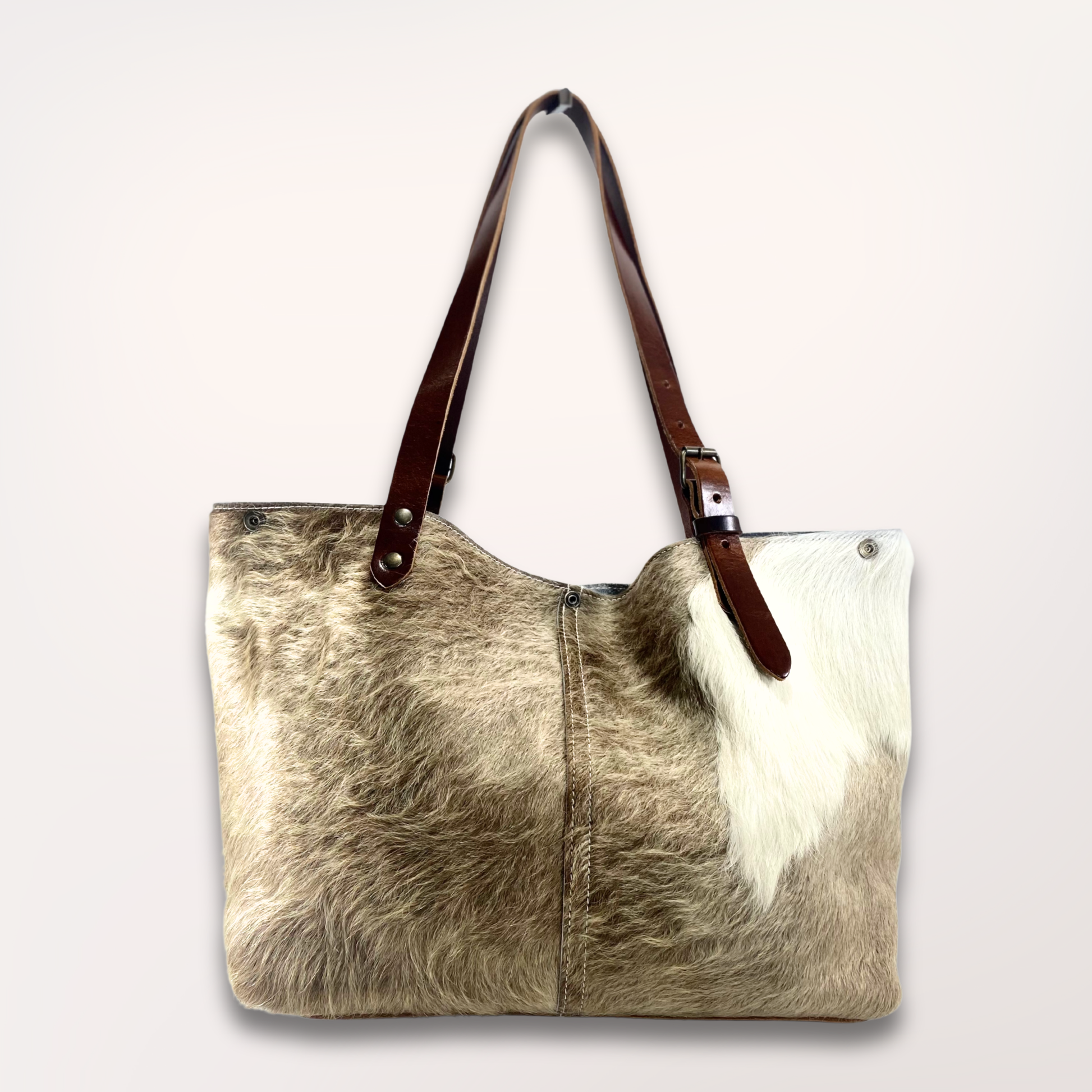 Cabas en peau de vache Brown Swiss – Taupe & Blanc naturel #13/085