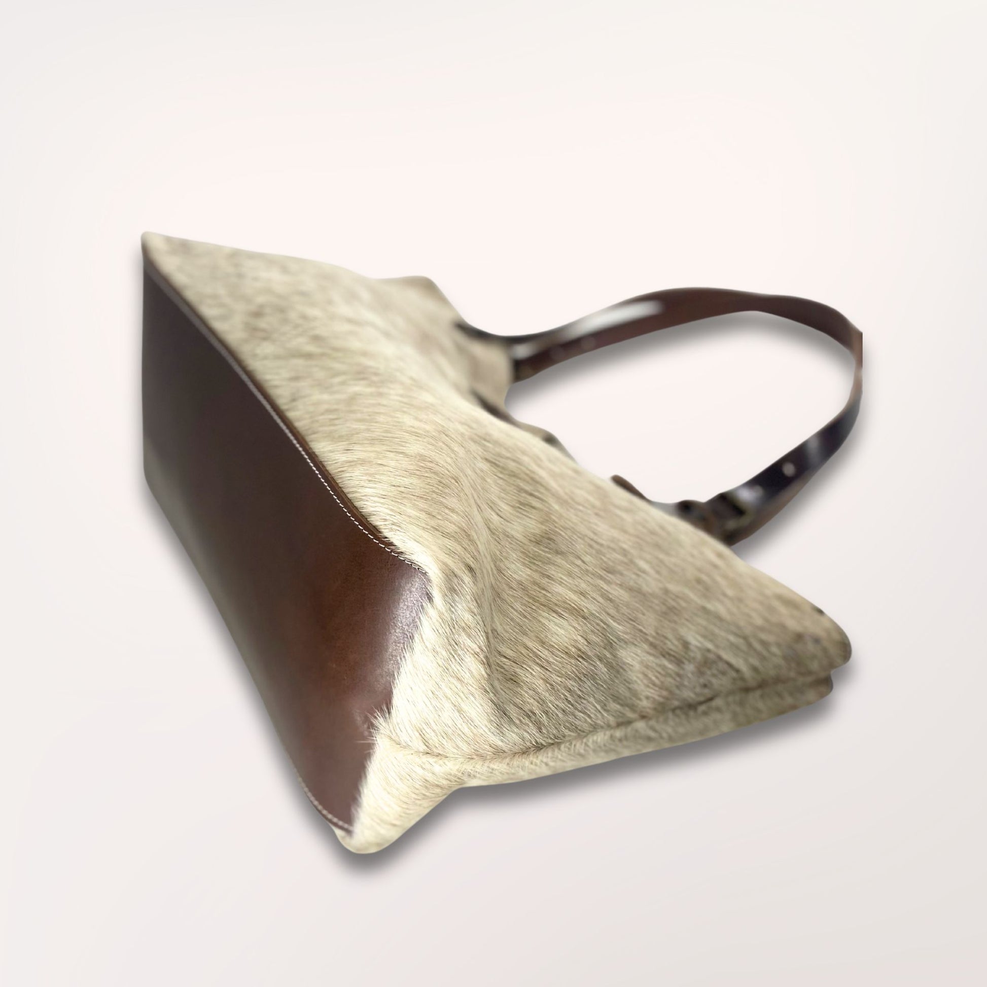 Cabas en peau de vache Brown Swiss – Taupe & Blanc naturel #27/106