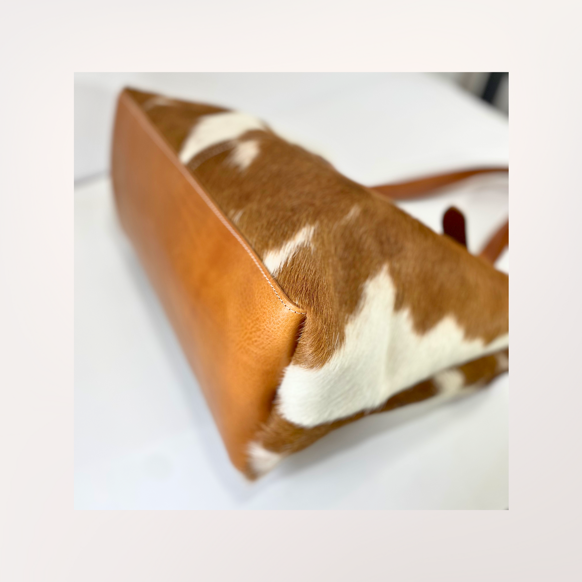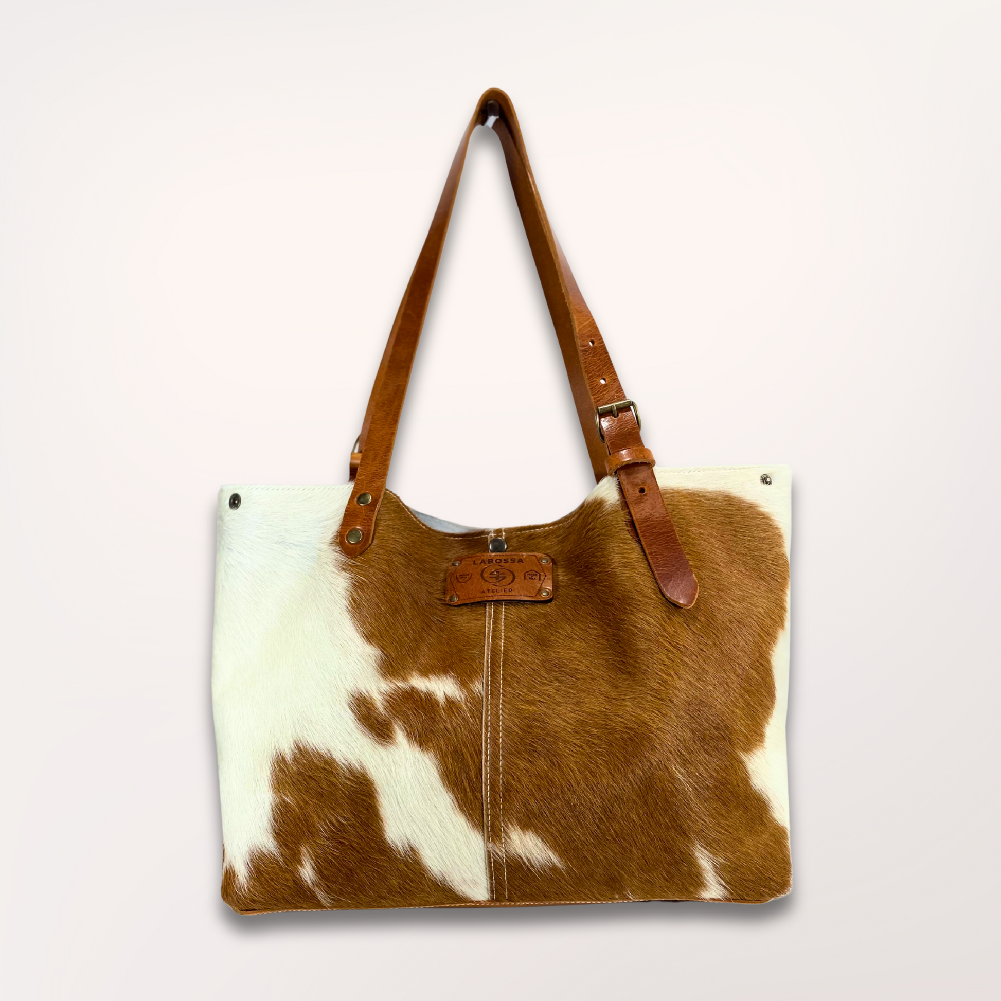 Cabas en peau de vache Montbéliarde – Marron clair & Blanc