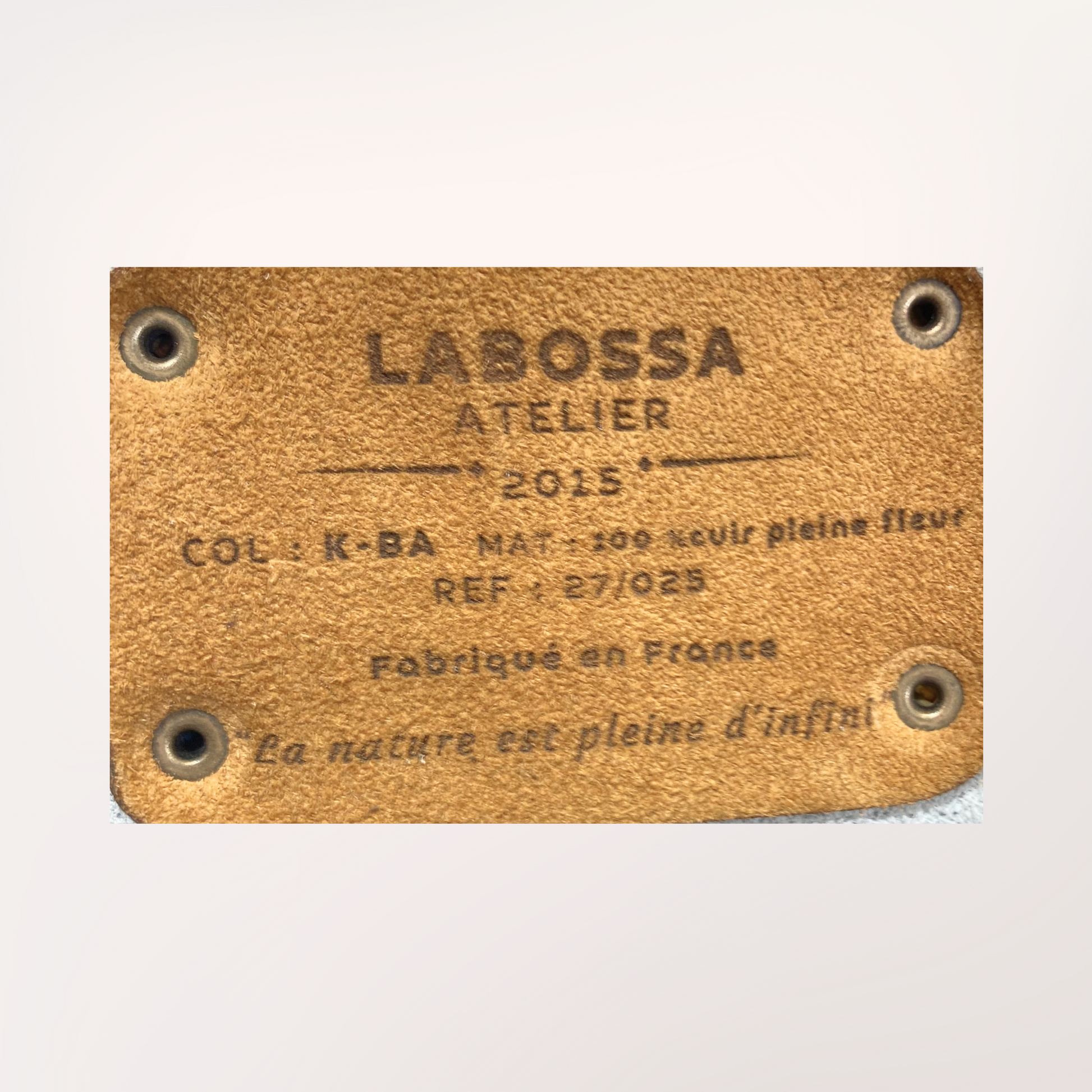 Les lanières réglables et le fond sont en cuir box, offrant résistance structurelle et finition soignée.