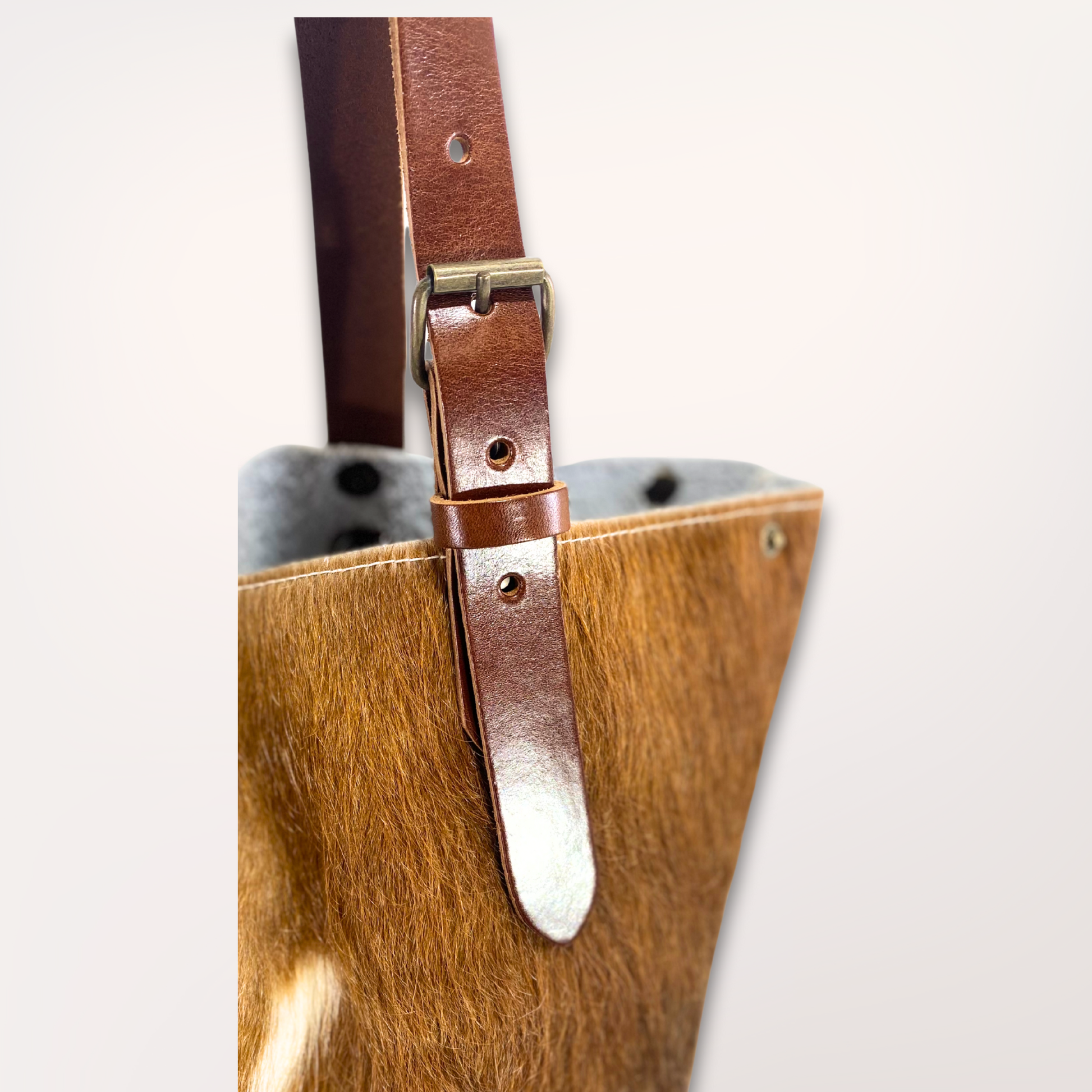 Cabas en peau de vache Montbéliarde – Marron clair & Blanc