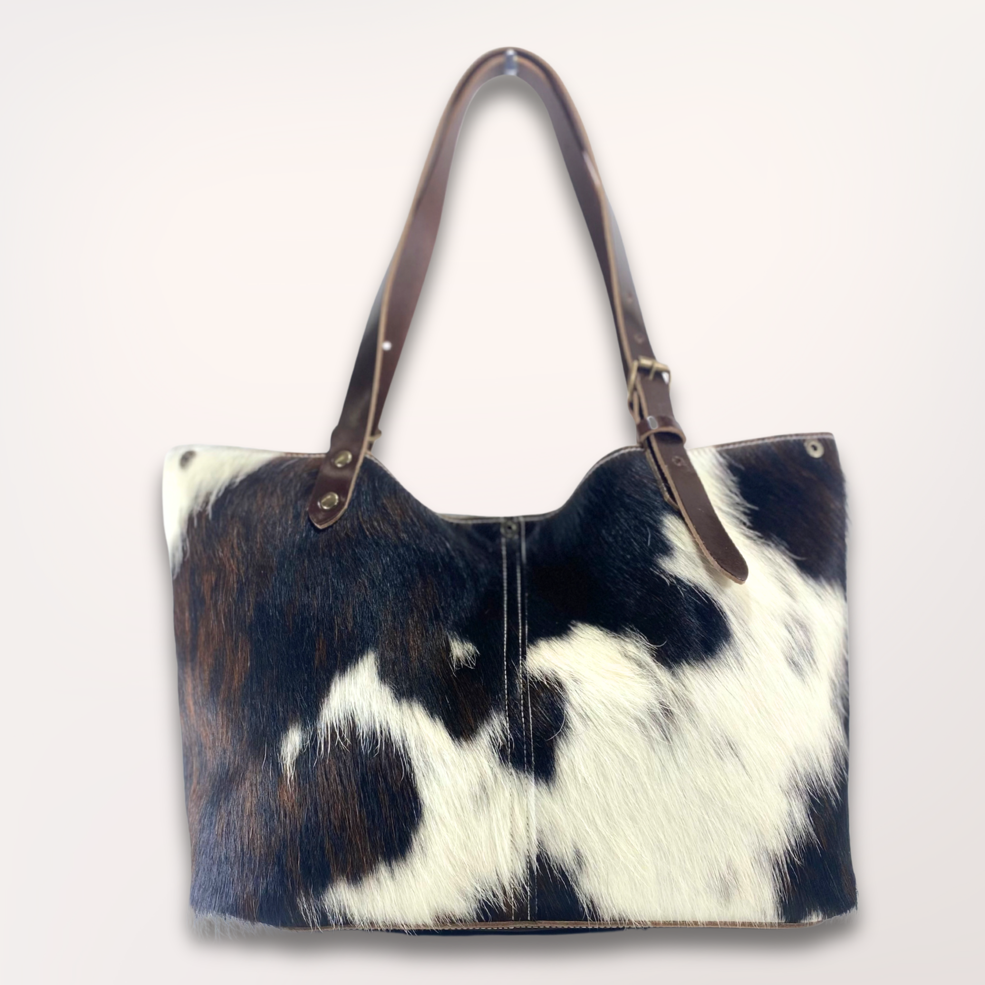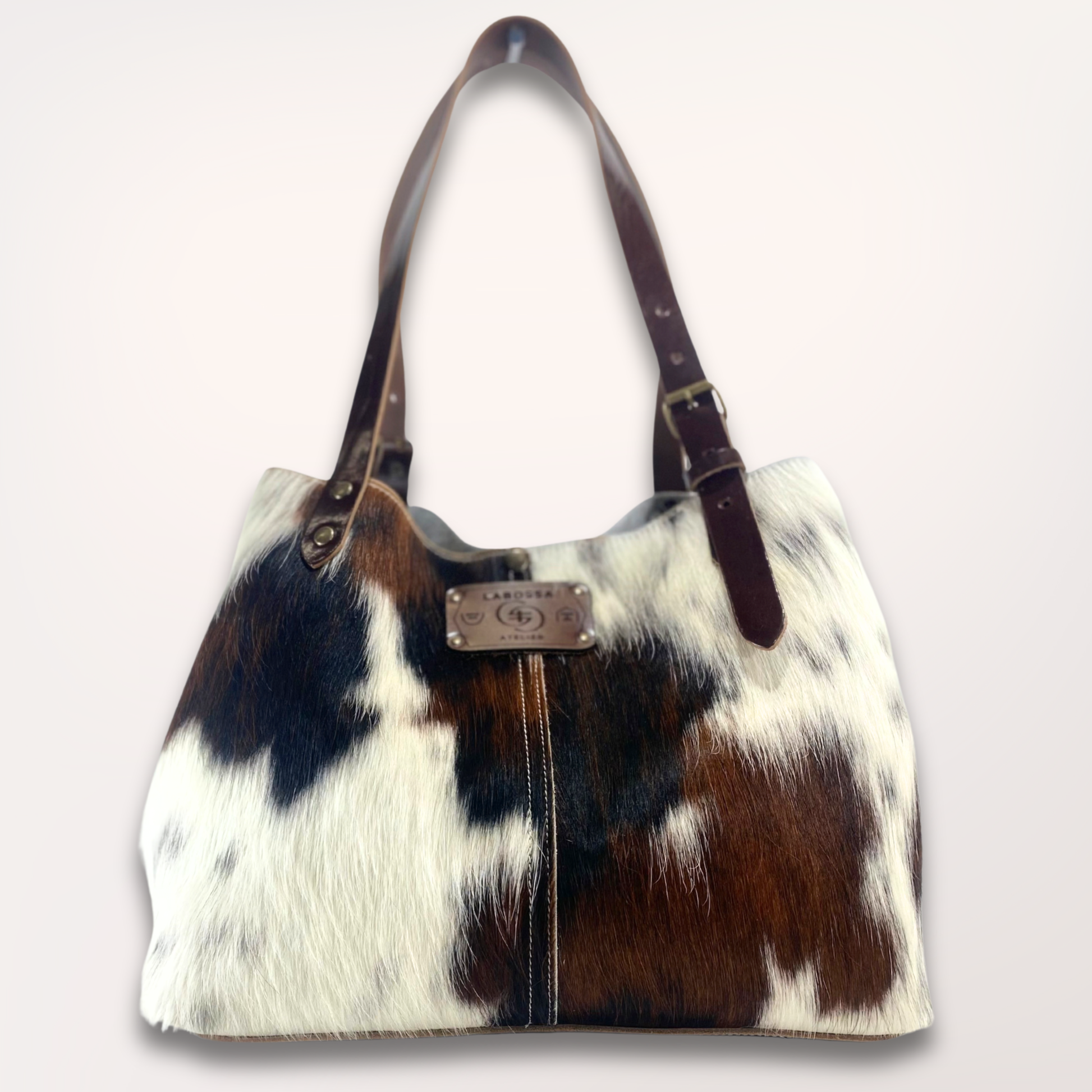 Cabas en peau de vache Normande – Noir, Marron & Blanc naturel #13/110