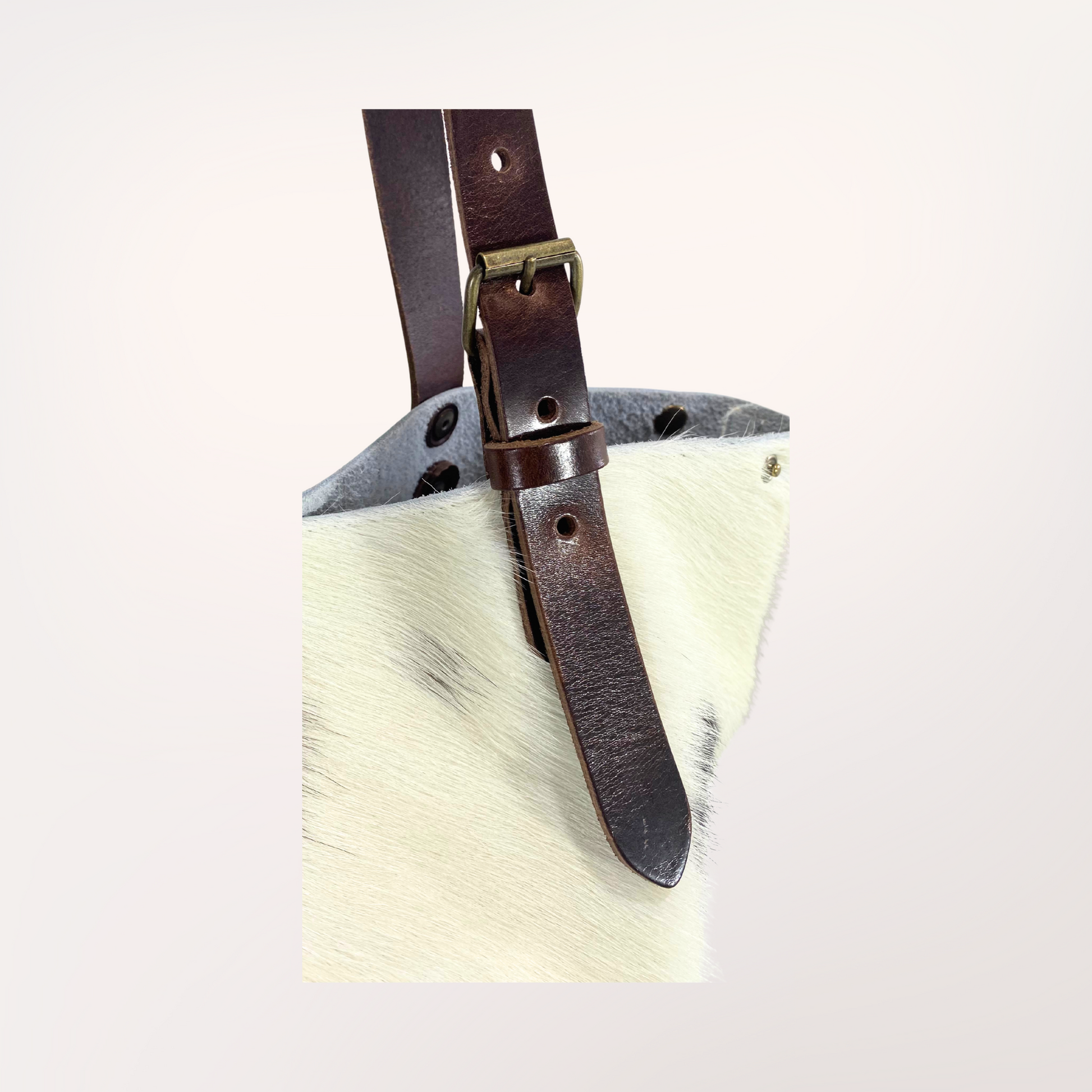 Cabas en peau de vache Normande – Noir, Marron & Blanc naturel #27/047