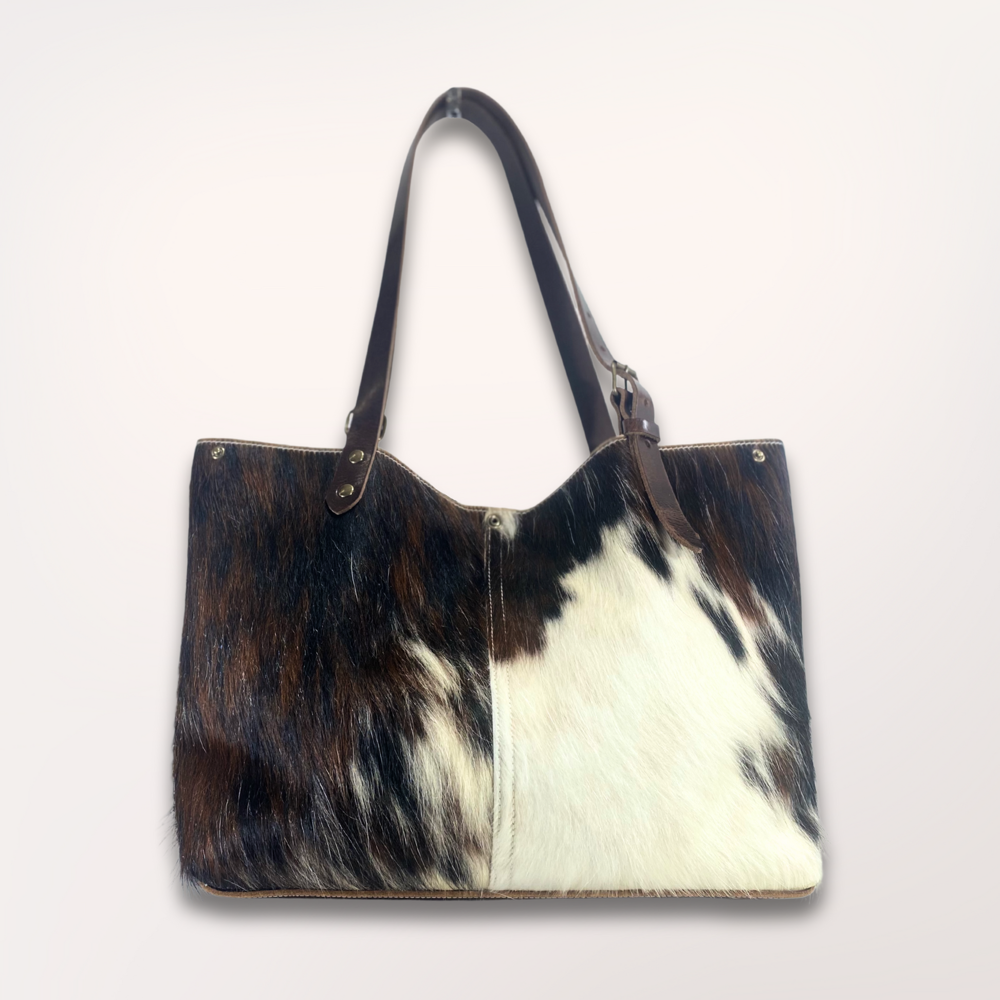 Cabas en peau de vache Normande – Noir, Marron & Blanc naturel #27/050