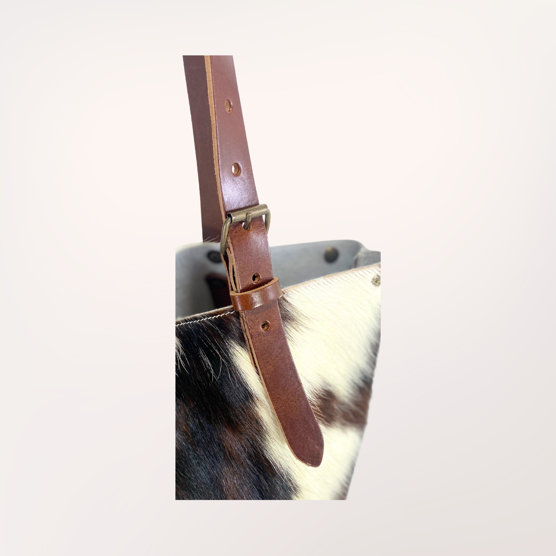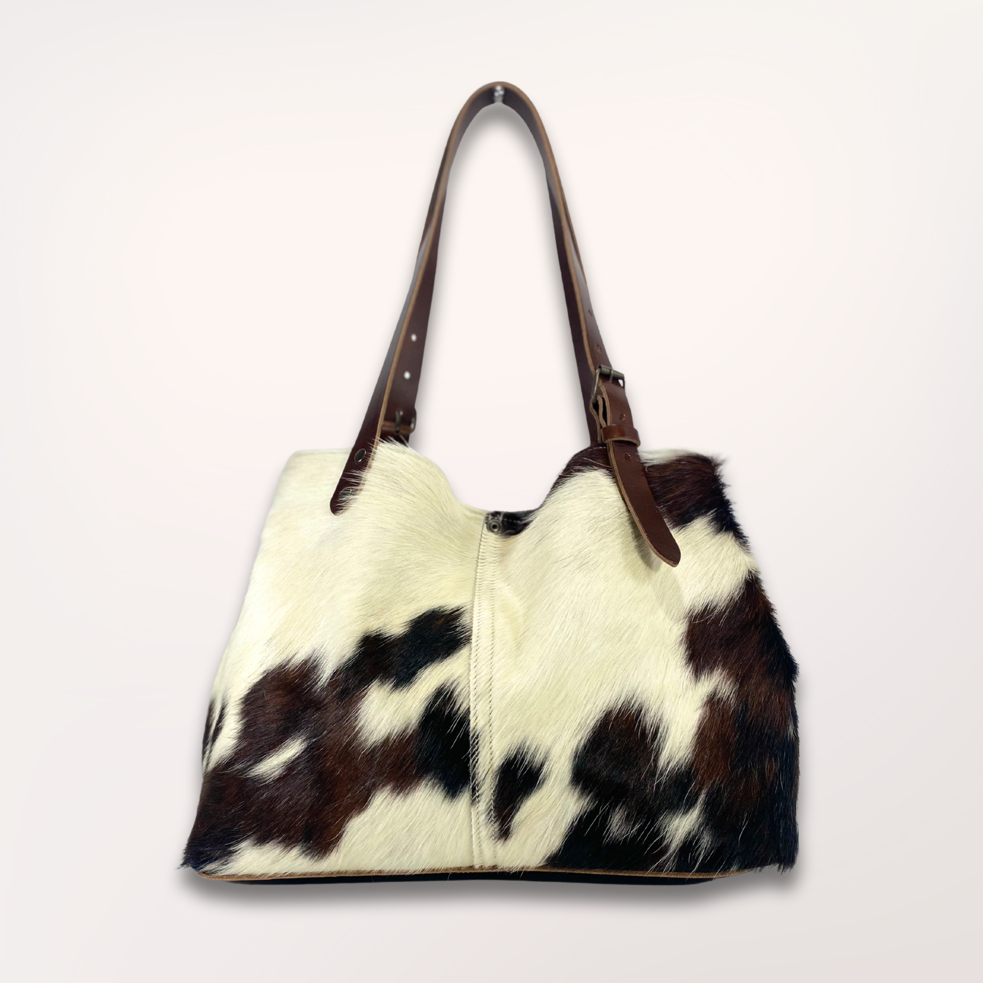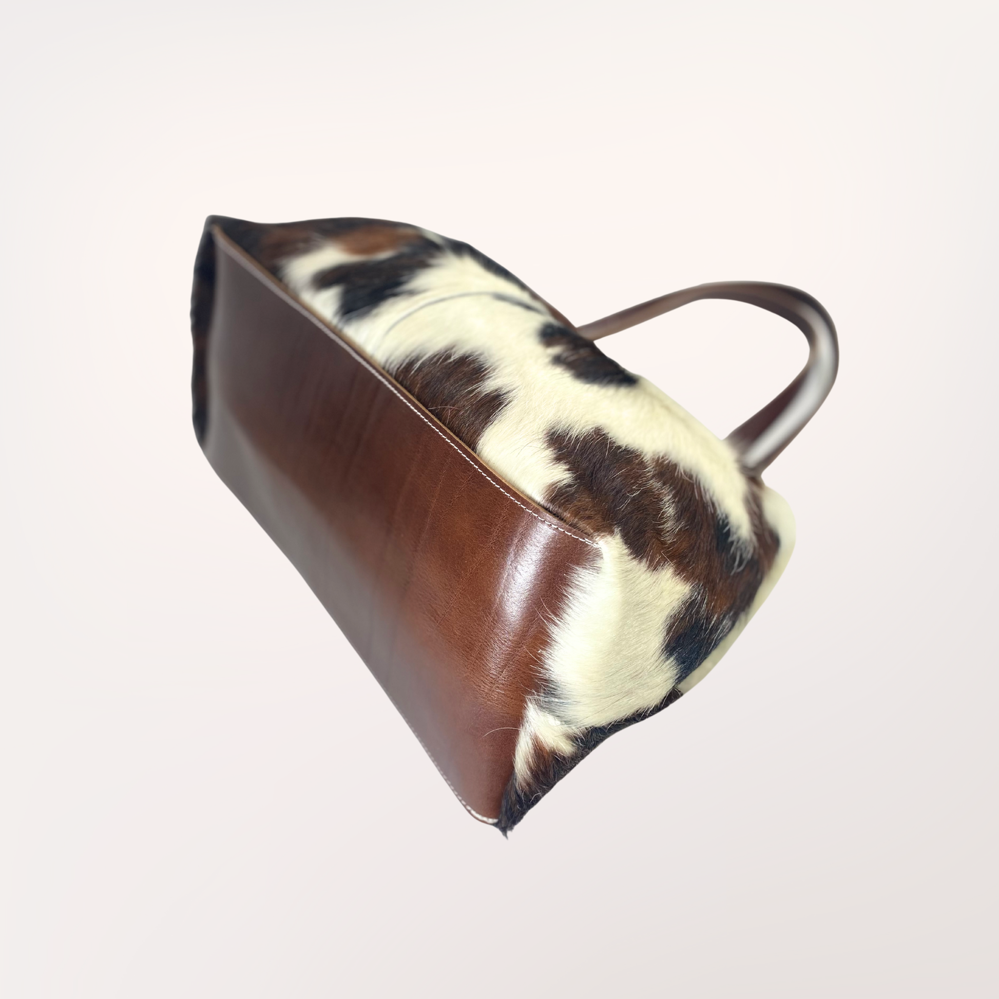 Cabas en peau de vache Normande – Noir, Marron & Blanc naturel #27/057