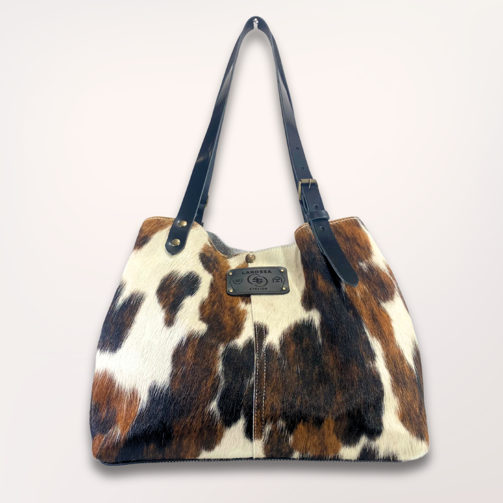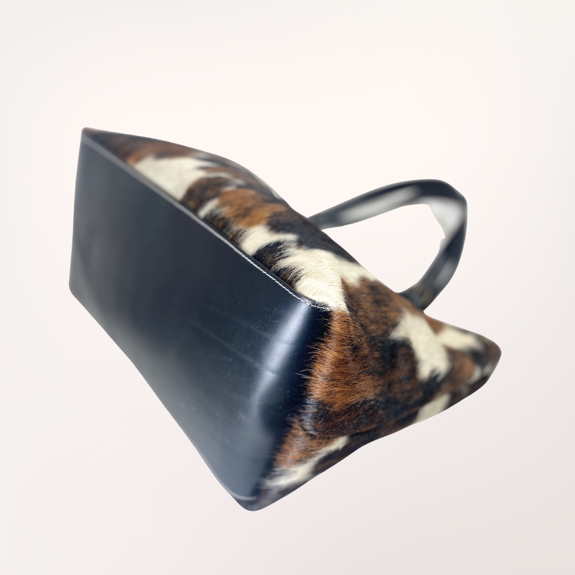 Cabas en peau de vache Normande – Noir, Marron & Blanc naturel #27/066
